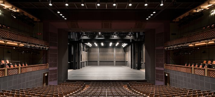 いわゆる劇場型。ステージは非常に見えやすく、椅子も長時間座っても疲れにくいケースが多いです。天井高が高いところも多く、音響照明を使った演出が映えます。